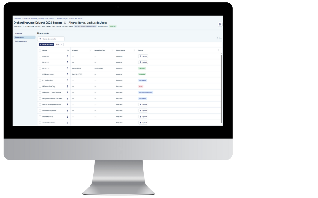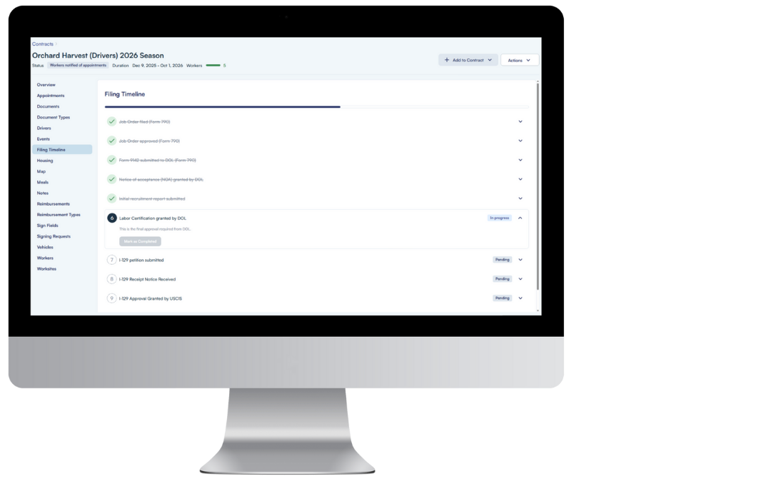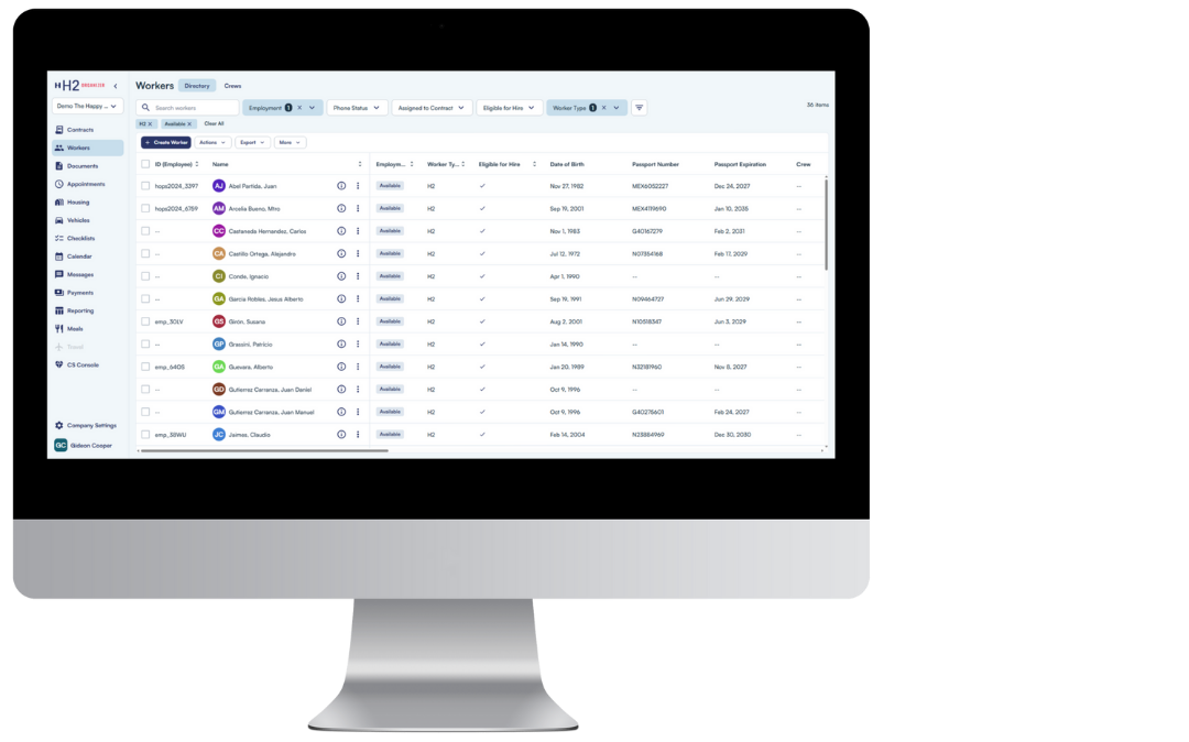 The H2 Organizer platform modernizes the H2 visa process for employers and workers. Whether for preferred workers, domestics or new recruits - messaging, onboarding, logistics, and inspections are all streamlined and compliant.